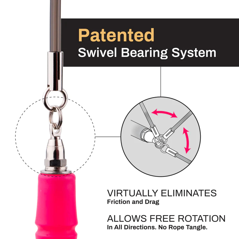 SWIVEL-BEARING TECHNOLOGY - Buddy Lee’s patented swivel-bearing technology has revolutionized the jump rope industry. Swivel-bearing technology ensures a smooth turning motion in any direction—with no friction or drag. Professional jump ropers love the smooth motion and affordable quality.