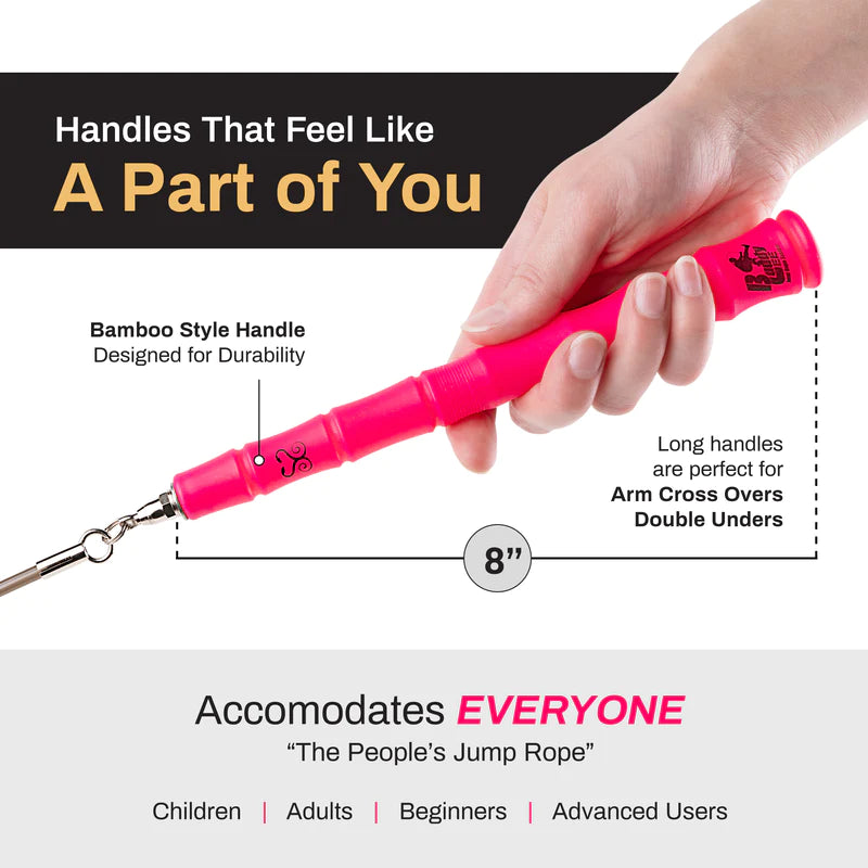DESIGNED FOR EVERYONE - Buddy Lee Jump Ropes are designed for everyone, whether beginner or advanced, adults or kids. The lightweight rope is versatile, and the bamboo-style, ergonomic 8-inch handles are comfortable for any hand size. This is more than a rope; it’s a way of life.