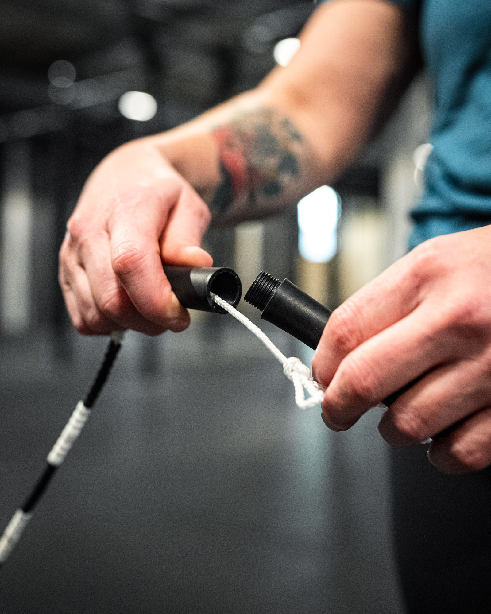 Extra long rubberised handles makes the rope easier to cross the body and create a good clearance specifically for the crossover movements. The rope can easily be adjusted in length by unscrewing the handles and move the knot.